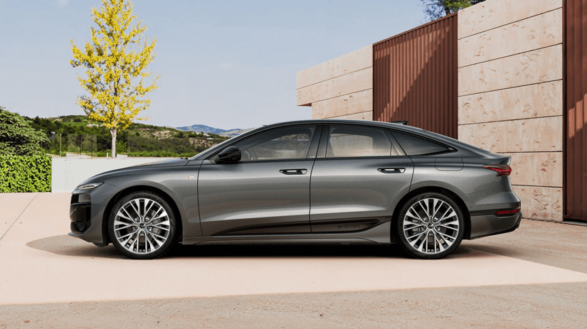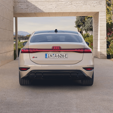 Traseira aerodinâmica: O design traseiro, enfaticamente largo, é caracterizado pela faixa de luz contínua com os anéis Audi iluminados acima. As proporções fortes e esportivas são sublinhadas pelo impressionante difusor traseiro.