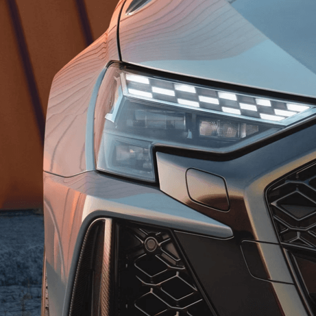 Os faróis LED Matrix escurecidos com encenação dinâmica da luz e piscas dinâmicos, incluindo assinatura de luz diurna específica dos modelos RS em design de "bandeira quadriculada", garantem uma iluminação de alta definição na estrada. Elementos redesenhados nos faróis e o design de luz mais estreito sublinham a aparência esportiva.